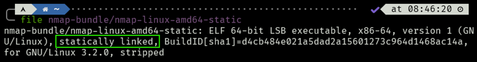 Congratulations! You now have your safe, self-made, static Nmap binary, ready to be dropped in any environment:
