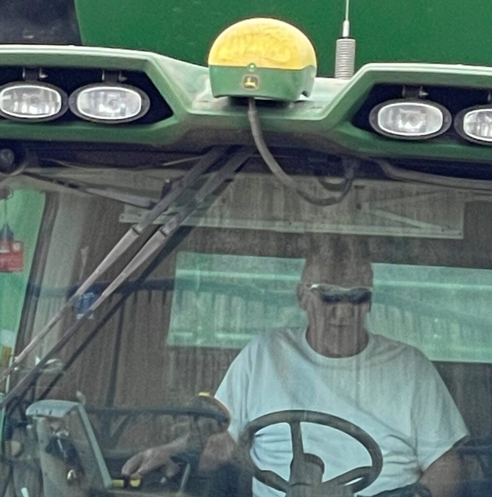 You’ll see the green and yellow receiver on the front of the cab roof. Other manufacturers have similar systems, such as Massey Ferguson’s MF Guide and Valtra Guide. They’re so expensive that they are sometimes stolen to order. One local farmer even had the steering wheel of his tractor stolen along with the receiver, as they are part of the auto-steering setup. A very costly day.