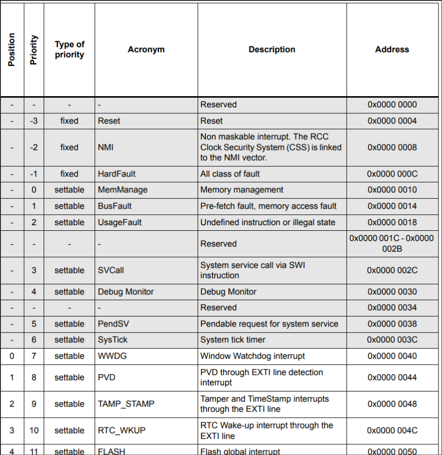 Find the interrupt vector table