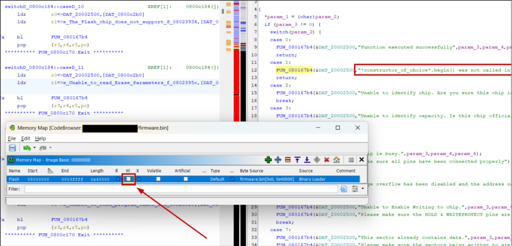 Flash memory will already be here with the base address of what you set previously. What Ghidra doesn’t do is set it as read-only (it’s expected that firmware usually does not or cannot write to the loaded flash image).