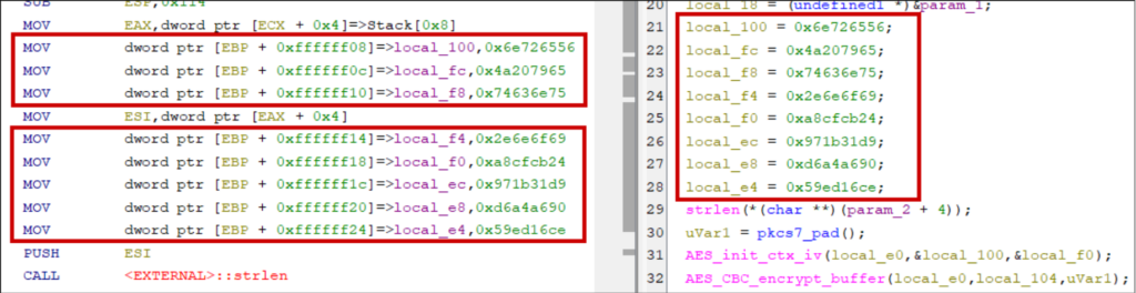 Strings can be constructed on the stack instead of being stored at compile time in static data sections. Why? Optimisation (e.g., four-byte strings can be handled in 32-bit registers), obfuscation, or intentional design choices concerning memory allocations, lifetimes, and real-time constraints.
