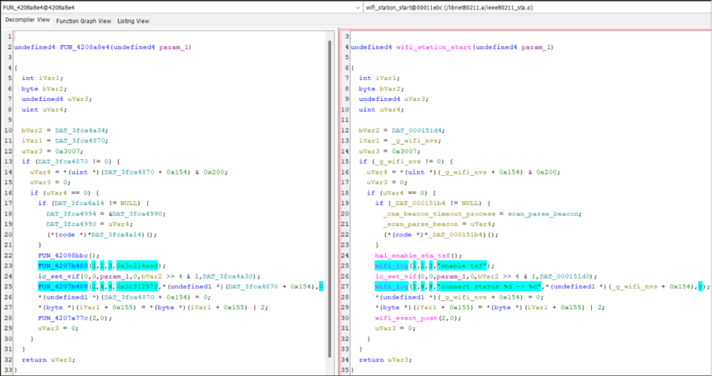 You then compare functions in your firmware with the BSim database. Unlike function IDs, it performs fuzzy matching. It manages to match a large proportion of functions even if the library is a different version or was built with a different compiler for a different architecture. With two clicks you can copy the function name and any custom datatypes.